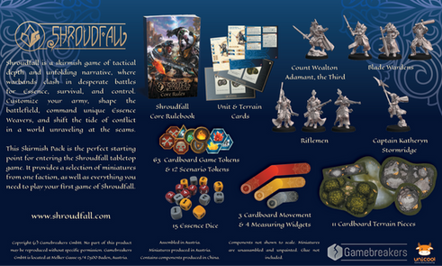 Each box is a complete, ready-to-play set, carefully designed to capture the essence of Shroudfall in a compact, accessible format. Inside, you’ll discover beautifully crafted components that embody the same lore, quality, and tactical depth that define the full game.